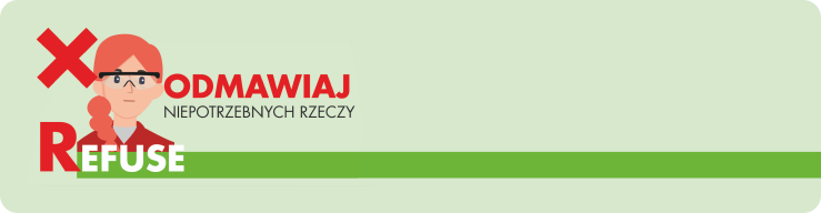 - Odmawiaj używania jednorazowych produktów (plastikowe kubki, słomki, plastikowe opakowania)